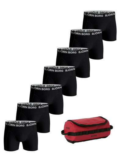 The Björn Borg Cotton Stretch Boxer 7p + Wash Bag is a multipack of seven comfortable men’s boxers made from soft cotton stretch quality fabric, and a toiletry case that’s ideal for storing necessities. The boxers feature a mid-rise waist and a medium leg length, with a logo elastic waistband in soft microfibre for added comfort.