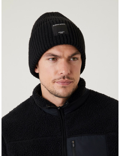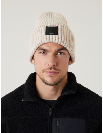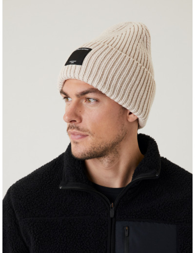 Discover comfort and style with the centre knit beanie, crafted in a soft blend of recycled polyester, acrylic, and cotton. The oversized fit ensures relaxed wear while the fold up edge adds modern flair. A distinctive label at the front brings subtle detail to this leisure essential. Perfect for everyday outings when you want to combine warmth with effortless style.