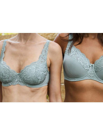Make your Valentine´s smile with Florence Padded in sweet Creole Pink or Sea Haze color. It´s great match with lighter colored clothes, making it disappear underneath. Padded bra has the classic supporting and lifting cut, giving nice upcurve to your bust without too much extra padding. Beautiful lace coverage and wide straps. For heavier bust we offer you Florence Full Cup on same color.