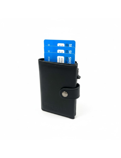 Handy leather RFID-protected card wallet. Size: 7x 10 x 2cm. Despite its small size, the wallet can hold a lot of things. Inside the wallet is an aluminum card case, which effectively protects the cards from unauthorized scanning and physical wear. By pulling the lever in the case, the cards slide out, and the right card is easy to pick out. The aluminum case can hold 4-5 cards. There are more card slots in the leather case that is attached with a snap around the aluminum case. There is a small zipperpocket for coins. There is also room inside the wallet for a few folded banknotes. Friitala RFID wallets are made of high-quality raw materials. Materials Protective case made of aluminum. Cover and interior made of calfskin.
