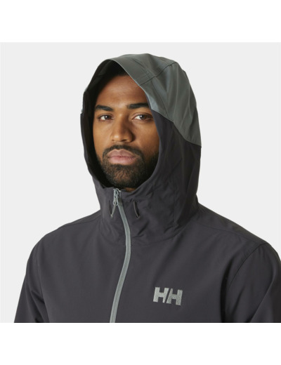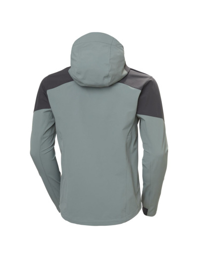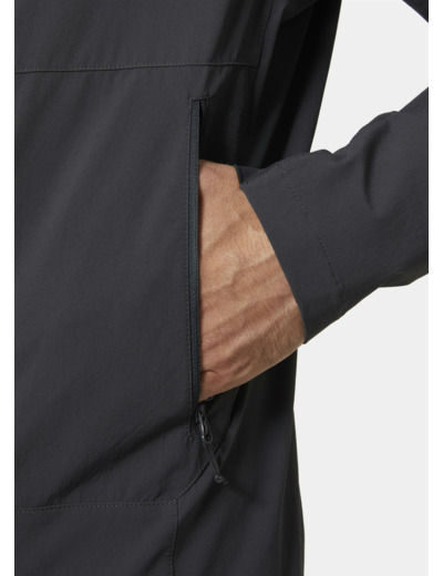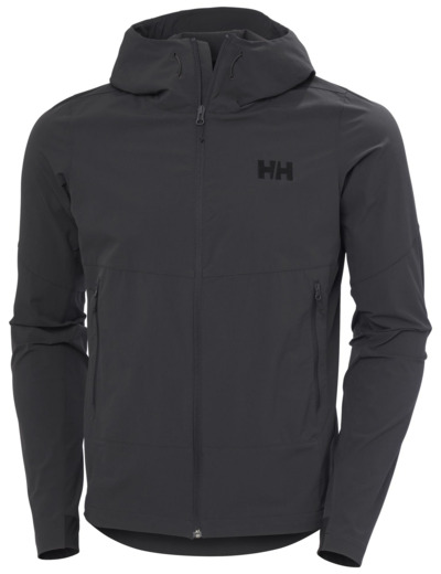 A men’s light softshell hooded jacket for dry, breezy days Shell: 47% Polyamide (Recycled), 41% Polyamide, 12% Elastane - Trim Fabric: 78% Polyamide, 22% Elastane This hooded softshell jacket is water resistant and ideal for light weather protection. The 4-way stretch fabric provides maximum mobility and comfort during hiking, trekking, and even ski touring. The jacket is breathable, flexible, and offers weather protection, making it suitable for windy yet dry conditions. It features two zippered hand pockets with mesh pocket bags for ventilation, an adjustable hood, and comfortable stretch inserts in the cuffs.