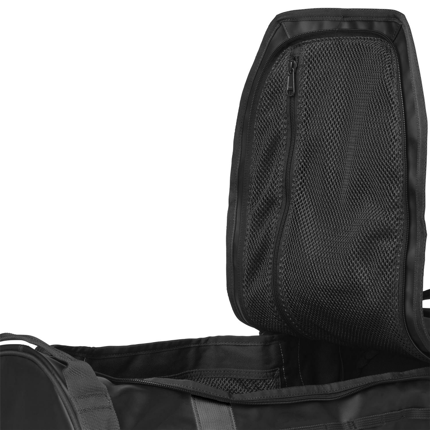 The sporty looking duffel bag constructed with a packable solution and a waterproof, soft, main fabric. This bag offers great versatility with multiple compartments and conversion between bag and backpack.