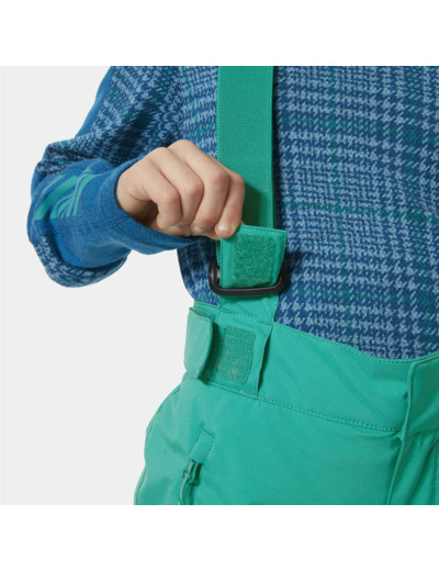 Insulation: 100% Recycled Polyester The ultimate junior ski pants packed with everything you need to stay out on the slopes. We combined our PFC-free fully waterproof and breathable HELLY TECH® Performance construction with PrimaLoft® 100g insulation to keep you dry and warm. We added reinforcement fabric on hems for durability, an articulated cut for total freedom of movement and detachable and adjustable suspenders. The leg length adjusts as kids grow.