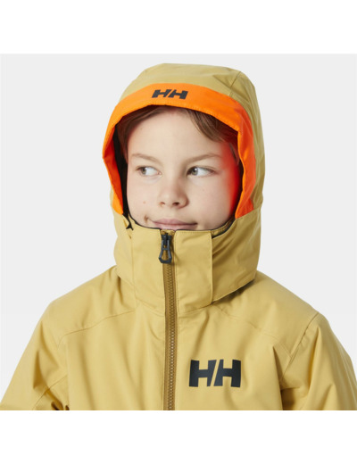 Insulation body: 100% Recycled Polyester This juniors’ ski jacket delivers the comfort, weatherproofing and warmth adventurers need to take on the mountainside. With our trusted HELLY TECH® PERFORMANCE 2-layer construction, the Stellar is waterproof/breathable and wind resistant. The exterior as a PFC-free, water-repellent treatment to shed light precipitation. PrimaLoft® BLACK Eco insulation, made from 100% recycled content, keeps young trail blazers warm. The jacket fit is relaxed with a longer silhouette and articulated sleeves for maximum freedom of movement. Additional details include neon and reflectives for visibility, a LIFE POCKET+™ to save your phone battery in cold, a detachable hood, drawcord hem and a powder skirt.