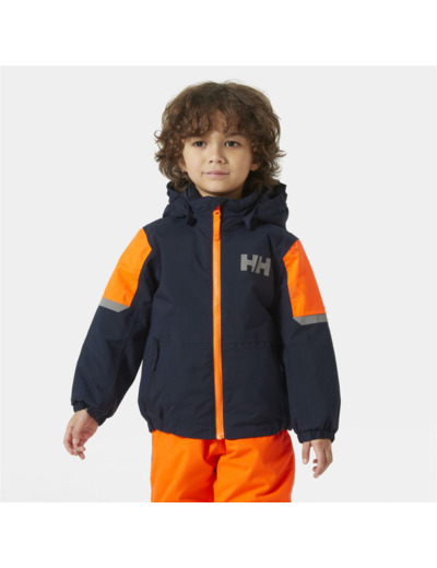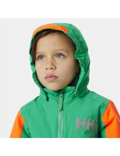 Insulation: 100% Recycled Polyester Designed for kids who love being outdoors in winter, this insulated ski jacket is cozy and delivers maximum protection for those long snow days. The waterproof/breathable HELLY TECH® Performance shell to keeps you snug and dry, while PrimaLoft® insulation delivers warmth. The insulation is 100% recycled and we added a PFC-free, water-repellent treatment – wins for you and the environment. Ski-specific features include a ski pass pocket and powder skirt. Hi-vis panels and reflective details enhance safety, making it easy to spot your kid on the slopes or on the playground.