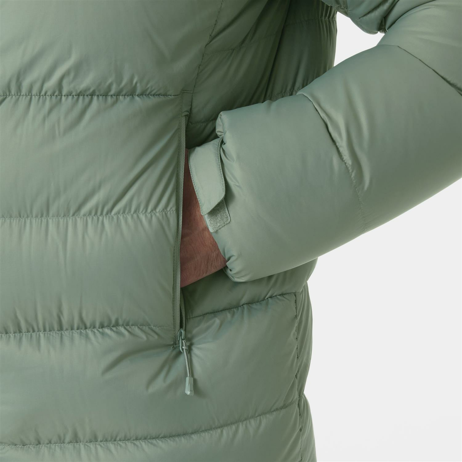 Insulation hood: 100% Recycled Polyester We used 800-fill power on this down jacket because higher fill-power works best for hikers, climbers and skiers who need mobility and warmth. With its impressive fill-count and a strategic box-wall construction, this is the warmest down jacket we’ve ever created, with the exception of the bespoke jackets we made for the Everest expedition team. Not only does the construction eliminate cold spots, we’ve added a down-filled collar and a shock-cord to keep cold wind out. With the environment in mind, our warmest down jacket uses responsibly sourced down; the water-repellent treatment is PFC-free.