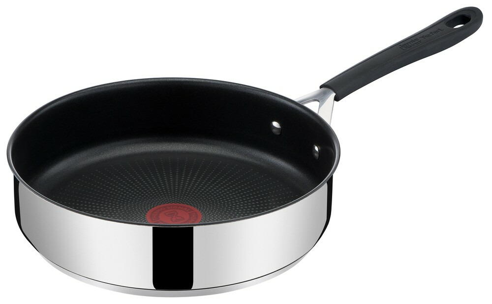 Prepare delicious and tasty meals with the lightweight, stainless steel cooking and frying pans. The silicone grip on the handle enhances usability and safety. The intelligent THERMO-SIGNAL™ temperature indicator changes color when the pan reaches the ideal cooking temperature, ensuring perfect cooking results with optimal texture and flavor. Designed by Jamie Oliver: "I use these products daily - they are durable and high-quality, guaranteeing excellent cooking results. That's why I have been collaborating with Tefal for almost two decades. Additionally, we share a common goal: to inspire more people to prepare delicious and nutritious meals from scratch." Jamie Oliver Elegant stainless steel Durable non-stick coating