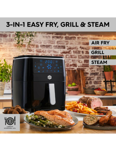 Easy Fry & Grill Steam + is a top-of-the-line air fryer. With this appliance, you can easily and quickly prepare versatile and healthy meals. This innovative 3-in-1 device offers three functions: it fries, steams, or grills food.