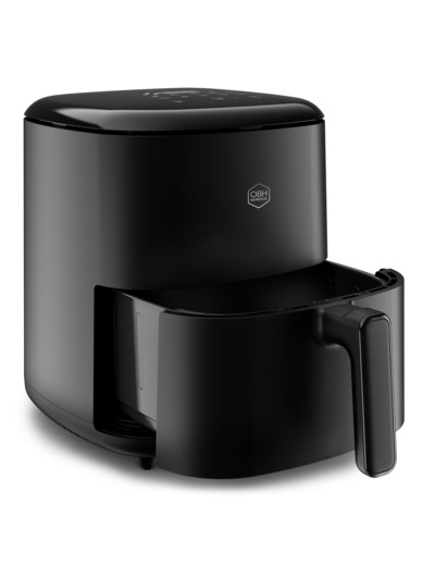 Healthy food made easy With the Easy Fry Max air fryer, you can easily prepare a variety of healthy meals. It cooks ingredients with circulating hot air, allowing you to make whole meals and delicious fried favorites with little to no oil. The hot and rapidly flowing air makes the food crispy on the outside and juicy on the inside, almost without any added fat. You can prepare healthy meals without compromising on taste! Quick and easy cooking The Easy Fry Max air fryer features a clear digital touchscreen for easy operation. It has 10 automatic programs and a 60-minute timer. While your food is cooking, you can attend to other tasks as the hot air does the work for you. The temperature is easily adjustable between 70-200°C. OBH Nordica's air fryer is a simple way to reduce energy consumption in your home. With the Easy Fry Max, you can save up to 65% energy as it cooks 40% faster compared to a traditional oven. These figures are based on an external test using 800g of frozen French fries. Variety in cooking With the Easy Fry Max air fryer, you can cook a variety of foods such as French fries, vegetables, chicken, pizza, nuggets, shrimp, bacon, steaks, and pastries. Thanks to the Extra Crisp technology, French fries come out golden, extremely crispy, and tasty. The 5-liter capacity is perfect for feeding the whole family or entertaining multiple friends. Easy to clean and maintain Oil and fried foods are usually difficult to clean. All parts of this device that require cleaning are detachable and dishwasher safe. The Easy Fry Max is repairable for 15 years, meaning we can send spare parts from 6,200 repair centers worldwide at a reasonable price. This ensures that the product can be used for years to come. Enjoy healthy food for the whole family while saving time and energy.
