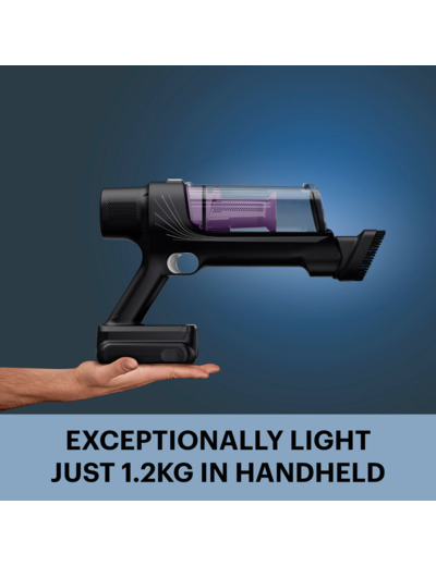 Integrated LED light on the nozzle helps you spot dust even under beds and behind doors, ensuring precise cleaning even in the dark. With a washable EPA filter, this stick vacuum achieves excellent filtration of up to 98%. For tougher particles, the X-pert 7.60 Essential features a MAX function to ensure all dirt stays in the vacuum until the container is emptied.