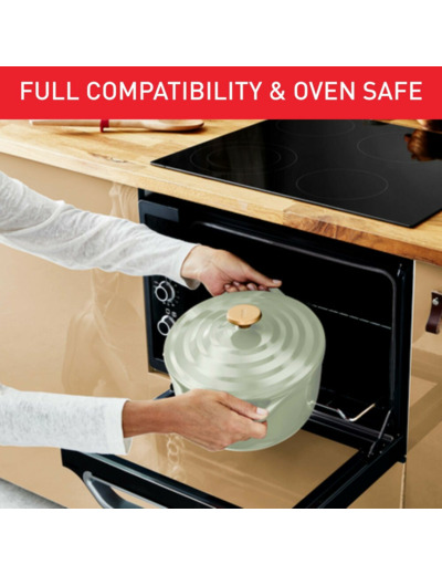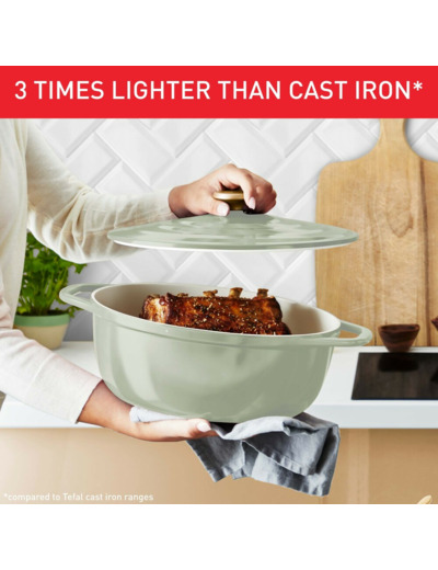 The Tefal Air pot combines all the benefits of a cast iron pot, but in a lightweight and modern design. Made from cast aluminum, this pot weighs only one third of the weight of traditional cast iron pots. The Tefal Air pot is perfect for cooking succulent stews, Sunday roasts, pulled pork, or soups. Additionally, the pot is easy to clean thanks to its ceramic coating and is dishwasher safe. The Tefal Air pot comes with a condensation lid, featuring small bumps that promote water circulation and make dishes tender and juicy. Suitable for all stovetops - ceramic, gas, electric, and induction. Furthermore, the pot is oven safe, making it ideal for preparing pulled pork or Sunday roasts. Despite being lightweight, its thick and sturdy aluminum construction ensures durability for everyday use.