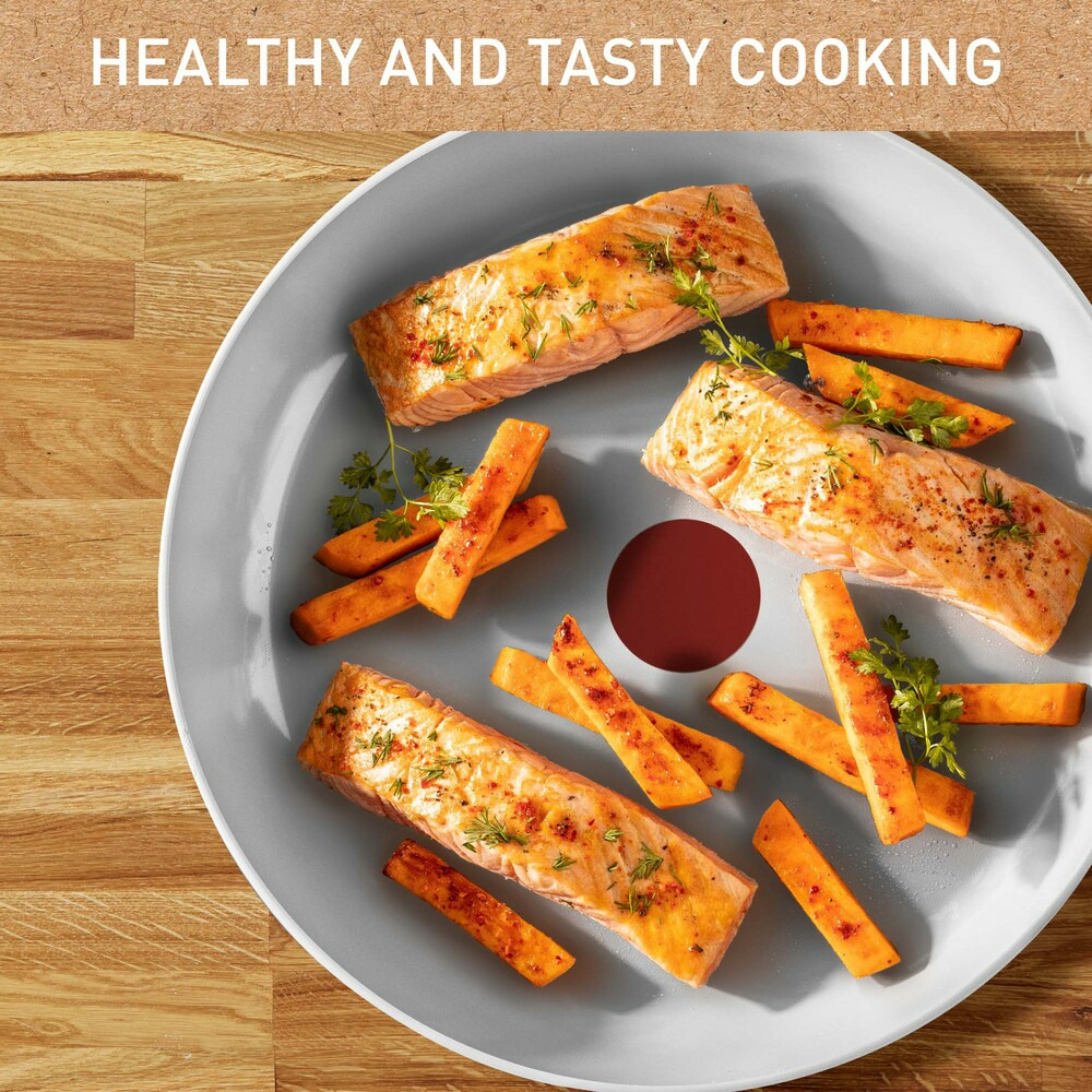 The frying pan is equipped with Tefal's Thermo-Signal™ technology, letting you know when it has reached the perfect temperature to start cooking. When the dot turns completely red, it's time to start cooking your food.