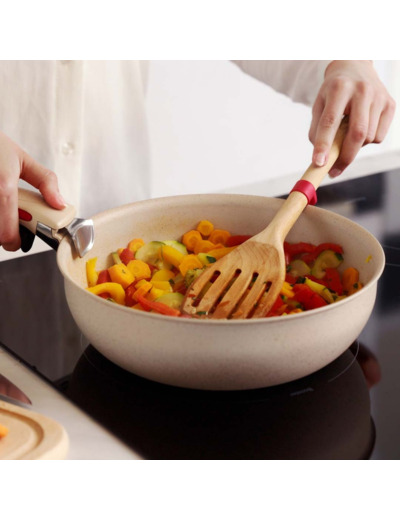 With Ingenio, you save both time and space in the kitchen. Like all our Ingenio series, Delight parts are stackable. The body of Ingenio Delight is made of 100% recycled aluminum and features a non-stick Mineralia+ coating infused with minerals. This is reflected in the design of the frying pans and saucepans, with a variable sandstone effect on a beige base.