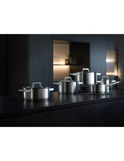 Experience the convenience of cooking with the stylish and practical cookware that makes success in the kitchen effortless. WMF's Comfort Line cookware features hollow handles that reduce heat transfer, ensuring that the handles only warm slightly, as well as convenient details that make cooking easy: an integrated measurement scale on the inside for easy measuring and wide pouring rims for precise, drip-free pouring. The Comfort Line cookware is made of sophisticated Cromargan® 18/10 stainless steel with a matte chrome finish that always leaves an impression. The cookware features a universal base that optimizes heat distribution for the best results and energy savings. These sophisticated cookware pieces are durable, dishwasher safe, and developed using German expertise and craftsmanship. They also come with heat-resistant glass lids for convenient monitoring. Less heat on the handles. Glass lid included.