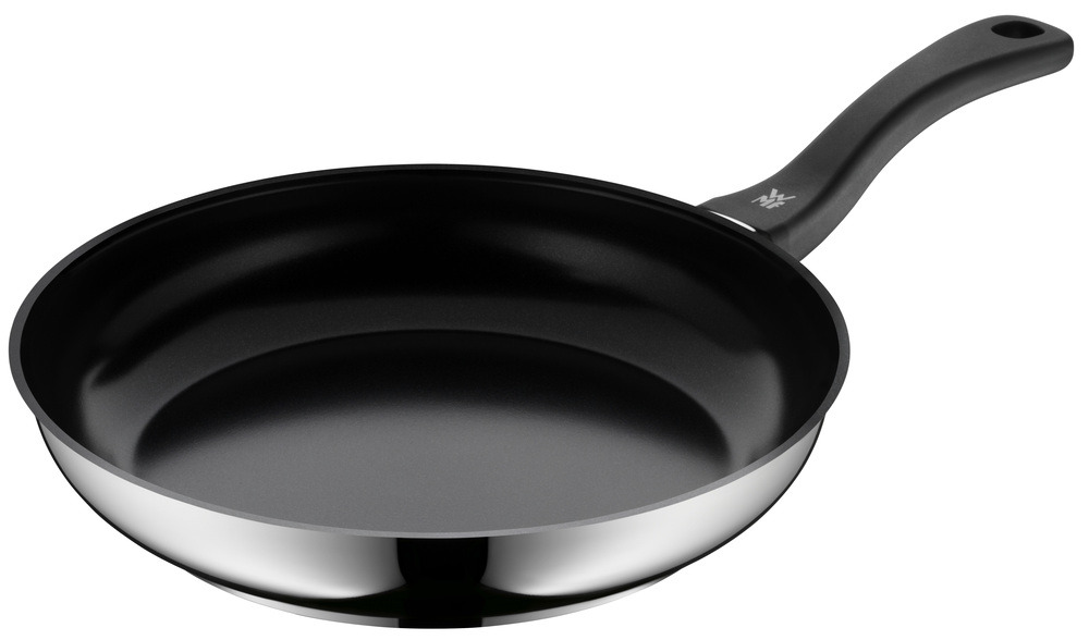 Discover gentle frying with the WMF Devil frying pan set. From juicy vegetables to delicious fish - the three-layer non-stick coating offers top-quality cooking and perfect results for your most delicate ingredients - ensuring effortless cleaning as well. At the same time, the TransTherm® universal base ensures ideal heat distribution and retention with every use. Made from stylish and durable rust-resistant Cromargan® 18/10 stainless steel, this cookware set can be easily used on both stovetops and in the oven*, guaranteeing the perfect finishing touch for delicious meals. Comfortable cool-touch handles** and wide pouring rims ensure flawless serving and pouring. Compatible with all types of stovetops, including induction cooktops. Non-stick coating TransTherm® universal base