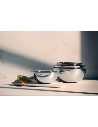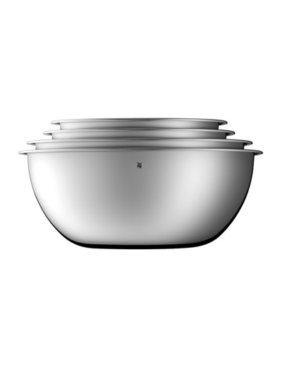 The WMF Gourmet kitchen bowl set includes four different-sized bowls for versatile use. The bowls are perfect for mixing when baking or cooking. They can also be used as stylish salad or serving bowls. The material used in the production of WMF kitchen bowls is high-quality stainless Cromargan® 18/10 steel, making them extremely durable for use with electric mixers, for example. The bowls are dishwasher safe, making them very hygienic, and can be stacked for storage. Dimensions: 1 x Ø 16 cm/1 L/7 cm (height), 1 x Ø 18 cm/1.5 L/8 cm (height), 1 x Ø 22 cm/2.5 L/9.5 cm (height), and 1 x Ø 24 cm/3.5 L/10.5 cm (height). When the material used in the product must be of high quality, durable, and maintain its shine year after year, the natural choice is WMF's stainless Cromargan® 18/10 steel. Cromargan® is a registered trademark that ensures WMF's Cromargan® steel is different from other stainless steels. Its manufacturing processes are efficient and high-quality. The quality of Cromargan® steel is closely and regularly monitored, ensuring that products made from it consistently meet the required standards. Additionally, Cromargan® steel is highly resistant to scratches and wear, completely rustproof, does not retain any flavors, and withstands food acids. Cromargan® steel is manufactured in Germany. WMF is one of the world's leading manufacturers of stainless steel products and has been producing high-quality and convenient kitchen and household products since 1853. WMF has won many international design awards for both design and functionality, especially related to frying pans, pots, and Cromargan® steel production. The range includes cooking and frying utensils, knives, and cutlery, as well as various electrical appliances. Bowls in 16 cm, 18 cm, 22 cm, and 24 cm sizes. Made from high-quality stainless Cromargan® steel.