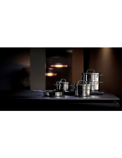 Compact cooking pot with intelligent design: WMF's Mini cooking pot collection is designed for kitchens of all sizes. It delivers impressive performance in a compact size. The space-saving stackable design makes it ideal for smaller portions and easy storage. The wide pouring rim ensures effortless serving and a spotless kitchen. These convenient features combine with flawless cooking results thanks to the TransTherm® universal base, providing ideal heat distribution and retention in every meal. Compatible with all stovetops, including induction, WMF's Mini cooking pot is made of stylish, sophisticated Cromargan® 18/10 stainless steel - a promise of unique durability, dishwasher resistance for ultimate convenience, and a striking finish that always leaves an impression. Made of high-quality Cromargan® stainless steel. TransTherm® steel base ensures even heat distribution across the entire base.