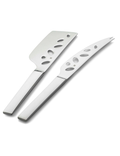 The Thin Cheese Knife is ideal for cutting soft cheeses, while the wide knife is best suited for hard cheeses. Thanks to the holes in the blade of the knife, even soft cheese won't stick to it, making cutting easy. The thin knife's tip is perfect for hygienic serving of cheeses. Made of high-quality stainless Cromargan® 18/10 steel. The length of the thin cheese knife is 27.5 cm and the wide cheese knife is 24 cm. When the material used in the product must be of high quality, durable, and maintain its shine year after year, the natural choice is WMF's stainless Cromargan® 18/10 steel. Cromargan® is a registered trademark that ensures WMF's Cromargan® steel is different from other stainless steels. Its manufacturing processes are efficient and high-quality. Cromargan® steel quality is closely and regularly monitored, ensuring that products made from it consistently meet the required standards. Additionally, Cromargan® steel is highly resistant to scratching and wear, completely rustproof, does not absorb flavors, and withstands food acids. Cromargan® steel is manufactured in Germany. WMF is one of the world's leading manufacturers of stainless steel products and has been producing high-quality and convenient kitchen and household products since 1853. WMF has won numerous international design awards for both design and functionality, especially related to frying pans, pots, and Cromargan® steel production. The range includes cooking and frying utensils, knives and cutlery, as well as various electrical appliances.