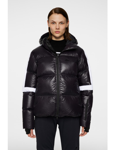 Elevate your skiing ensemble with our premium Creekside Down Ski Jacket crafted from lightweight, Shiny Nylon. Designed for the discerning adventurer, it features a range of features to elevate your skiing experience. The 2-way center front zipper ensures easy wearability and customizable ventilation, while elastic gaiters at the cuffs provide a snug fit to seal out the cold. It is adorned with a sleek Bridge logo badge on the chest, a cord adjuster at the bottom for personalized comfort and fit, and a snow skirt offering additional protection against the elements. Regular fit Attached goggle cloth on the inside One interior zipped pocket