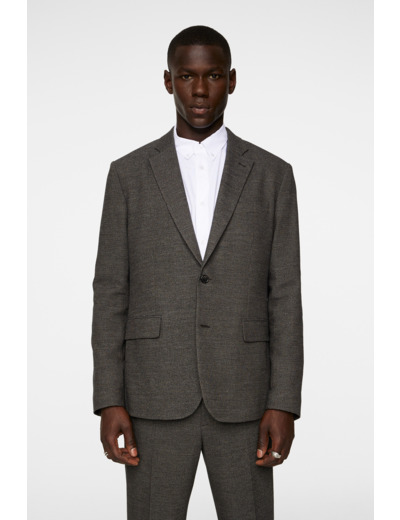 Introducing our Elton Blazer, crafted in a 2-tone comfort stretch cotton blend fabric. This unconstructed blazer offers a luxuriously soft feel and exceptional comfort, making it perfect for any occasion. Featuring a classic notch lapel, a sleek front closure featuring two branded buttons, and elegant double back vents, it embodies timeless style. The fully lined interior with jacquard logo stretch lining and stacked corozo buttons at the cuff add refined details. Complete the look with our Lois 2-tone Pants for a modern suit ensemble. Regular fit Notch lapel collar Hangerloop at neckline Soft comfort stretch fabric