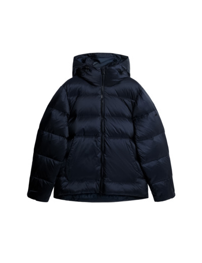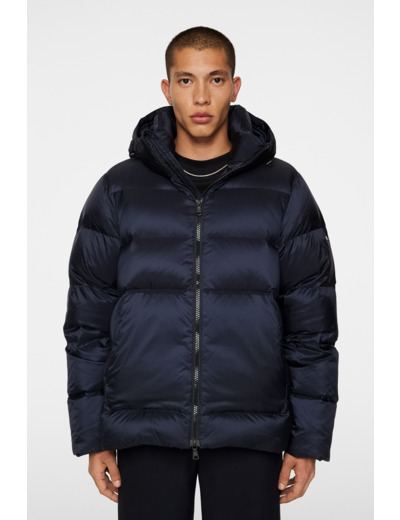 Introducing our top-selling Farrell Down Jacket crafted from recycled shell fabric, this lightweight marvel boasts a water-repellent quality that defies the elements. Filled duck down, it keeps you cozy warm on those cold winter days. The two-way zip at the front ensures easy wear, while fleece-lined hand pockets keep your hands snug. Our Bridge logo graces the left sleeve, for a signature touch. Regular fit Bottom hem with adjustable drawstring Hood with adjustable drawstring Inner pockets PFC-free WR treated fabric