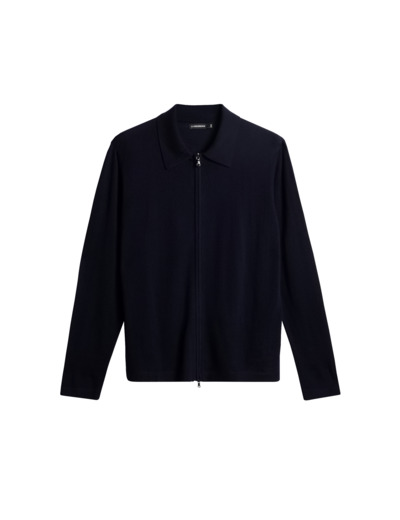 This modern Kaleb Zip Cardigan is a take on the classic cardigan. It features a slim fit and a versatile two-way zipper, making it an ideal layering piece. Crafted from knitted mulesing-free Merino wool, it is designed with a flat knitted collar, tubular hem at the bottom, and ribbed cuffs for a polished look. Slim fit Fully fashion details Tilted shoulder seam