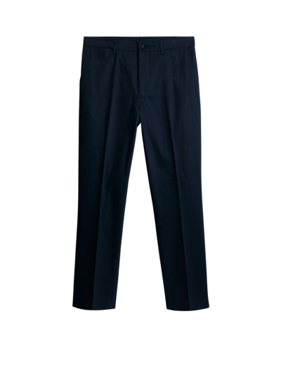 Our Lois T Cotton Twill Pants are crafted from a soft, stretchy cotton twill, ensuring comfort and style. They are tailored with a tapered silhouette featuring a creased leg. The pants are designed with single welt pockets at the back, a zip and button fly, and half-slanted pockets at the sides for functionality. Complete your ensemble by pairing these pants with our Julius Cotton Twill Overshirt for a complete look. (All tailored pieces include a complimentary J.Lindeberg suit bag, ensuring your pieces arrive just as sharp as you.) Regular fit Branded button closure at waist Long bottom hem for possible tailored length adjustment Inseam: 80 cm, Hem circumference: 40 cm (All tailored pieces include a complimentary J.Lindeberg suit bag, ensuring your pieces arrive just as sharp as you.) Cotton Twill Stretch