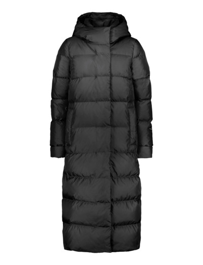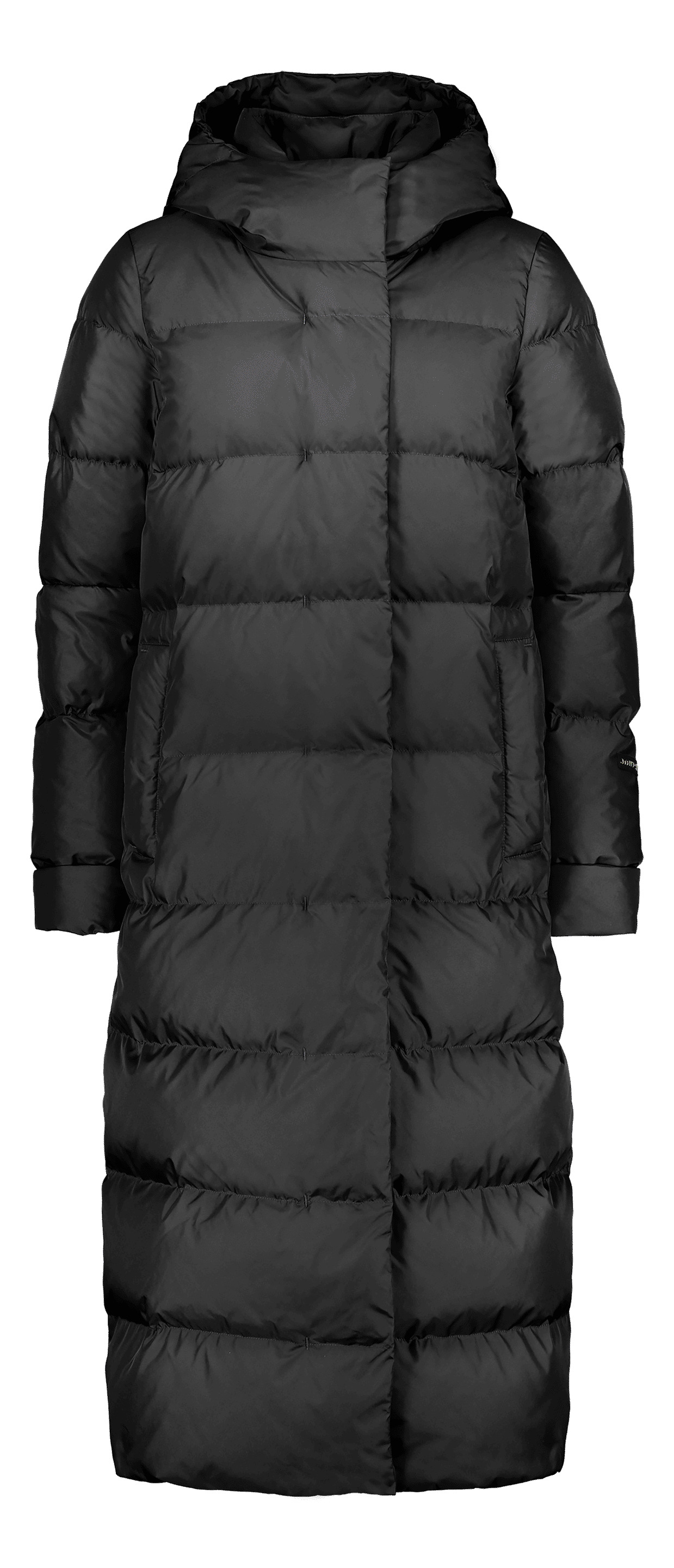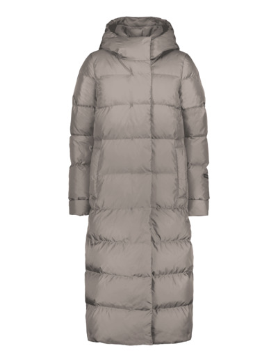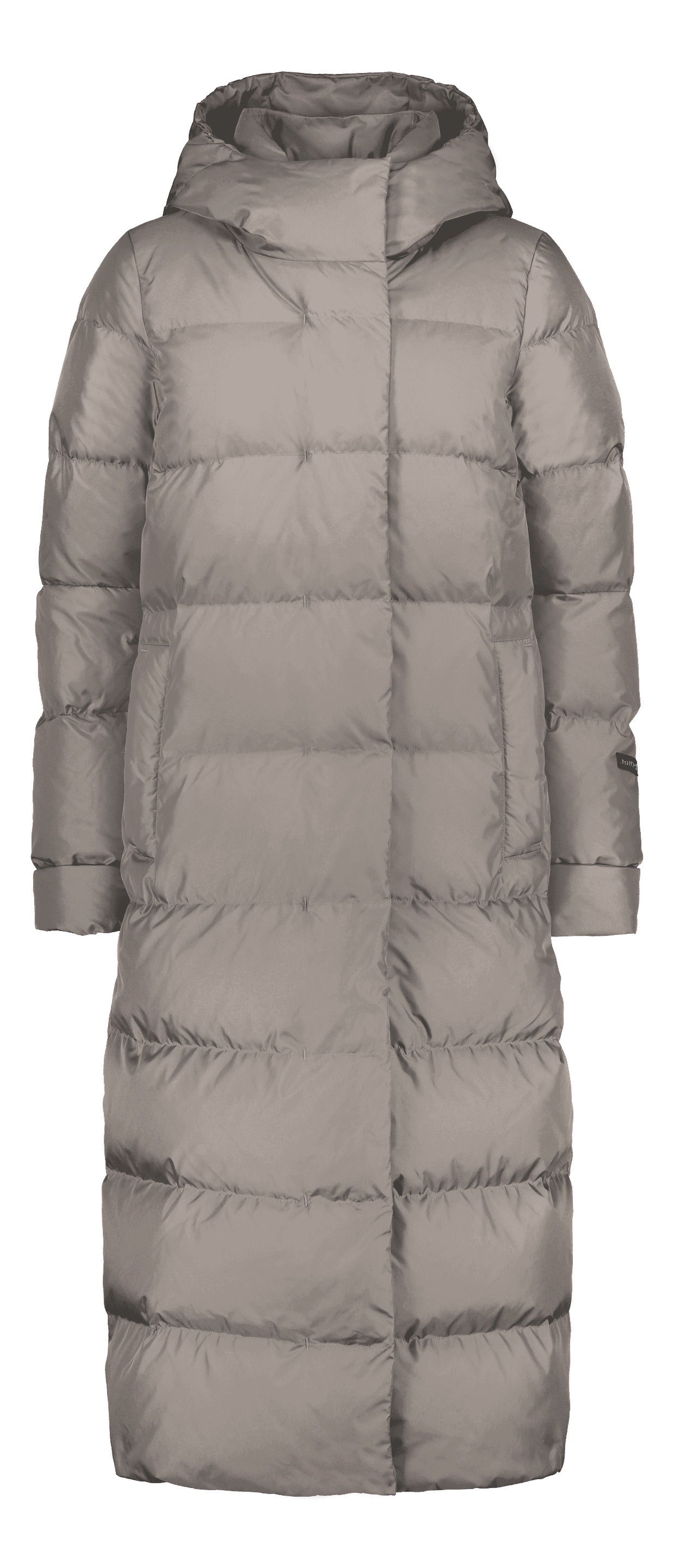 The ultra-long and warm Blanka envelops you in a luxuriously soft embrace. The coat features a modern, straight silhouette with a minimalist elegance, while remaining delicately feminine. The large, warm fixed hood provides extra protection. The hood edge has a gently cinching elastic, and the set-in sleeves feature turn-back cuffs. The subtly glossy, yarn-dyed fabric moves beautifully with motion and light. The coat is filled with 100% responsibly sourced, rigorously purified down.