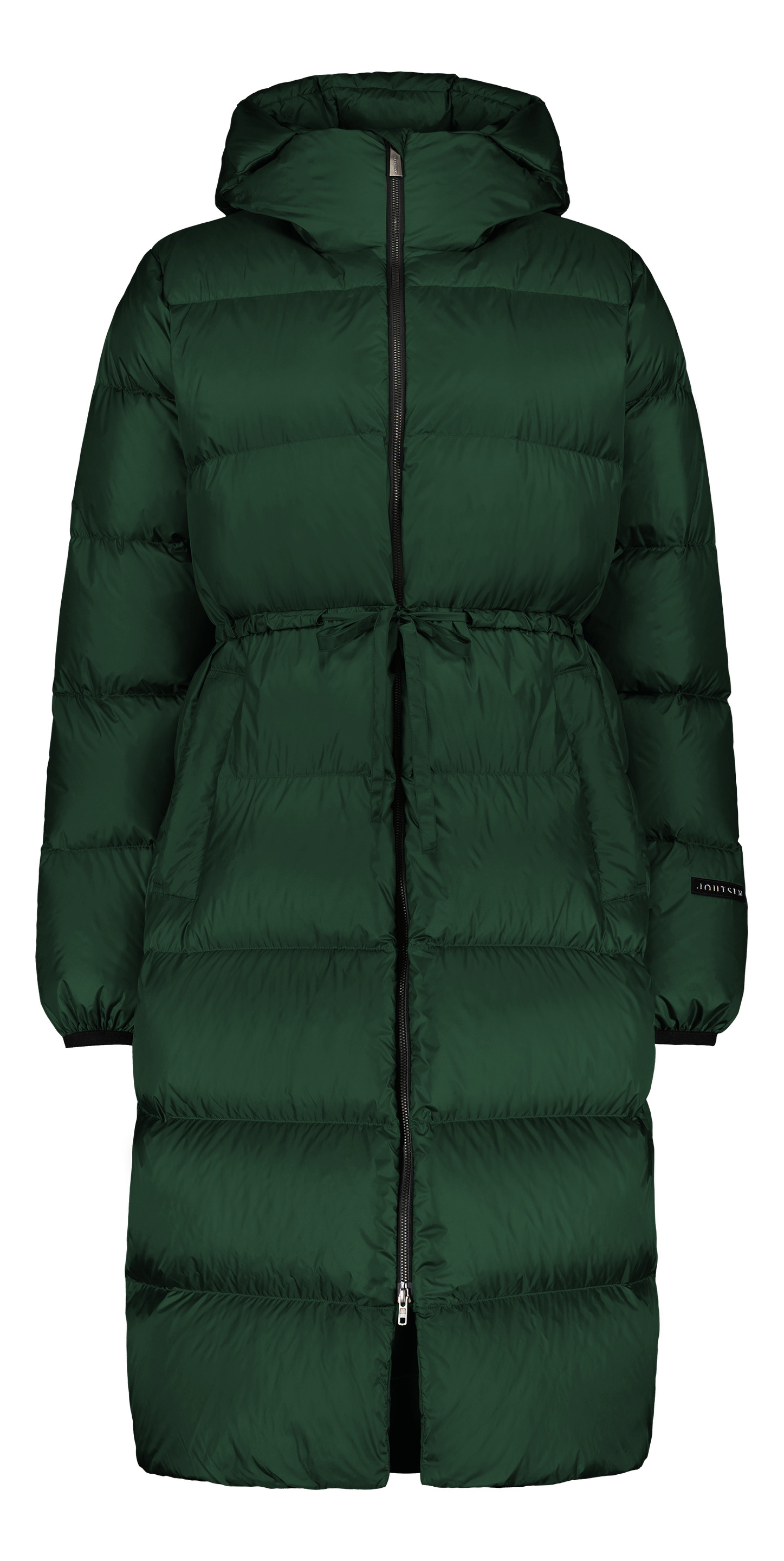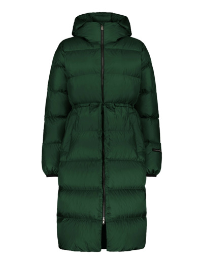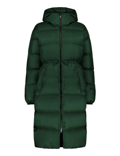 The long, dreamy light and soft Estrid down coat looks fantastic and feels wonderful. You can easily change its appearance from a straight line to accentuate the waist using an adjustment strap. The adjustment is carefully positioned so that it flatters different body types in a beautiful way. The Estrid coat is made of a durable and lightweight fabric that repels water and keeps out the wind. The well-shaped and eye-catching hood has a protective storm edge. The coat's filling is 100 percent responsibly produced down.