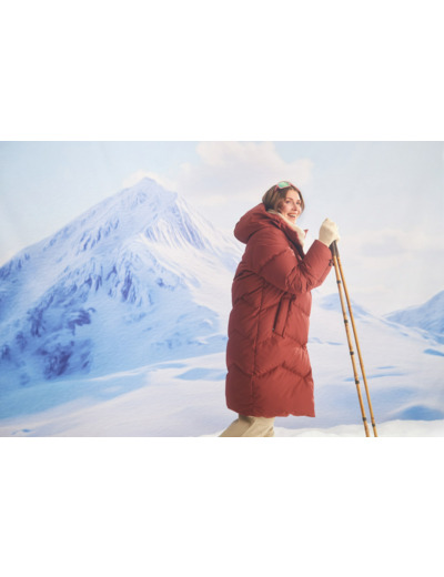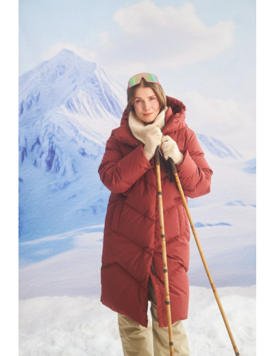 The Reina coat’s practicality is enhanced by its large hood and soft inner collar, which provide warmth and protection against cold weather. Exceptional warmth is ensured by the 100% responsibly sourced and certified clean down filling.