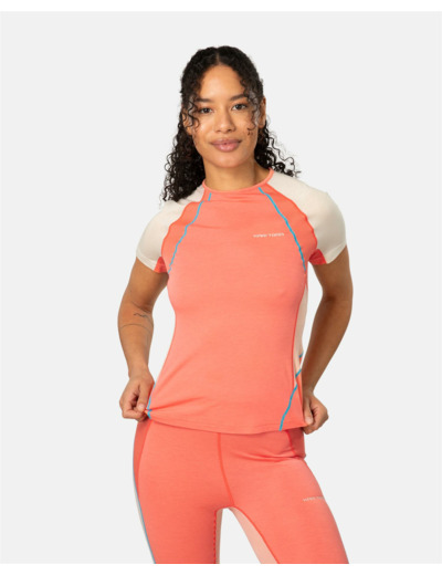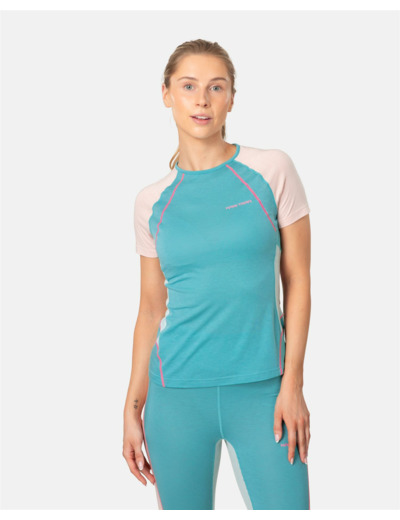 The Kari Traa Alma Tee is your favorite lightweight, technical base layer in a colorblocking short sleeve. Body mapping technology and strategically placed Tencel panels wick away moisture. A polyester/wool blend insulates without overheating. Flattering feminine lines make the Alma Tee a stylish yet functional companion for any high effort activity
