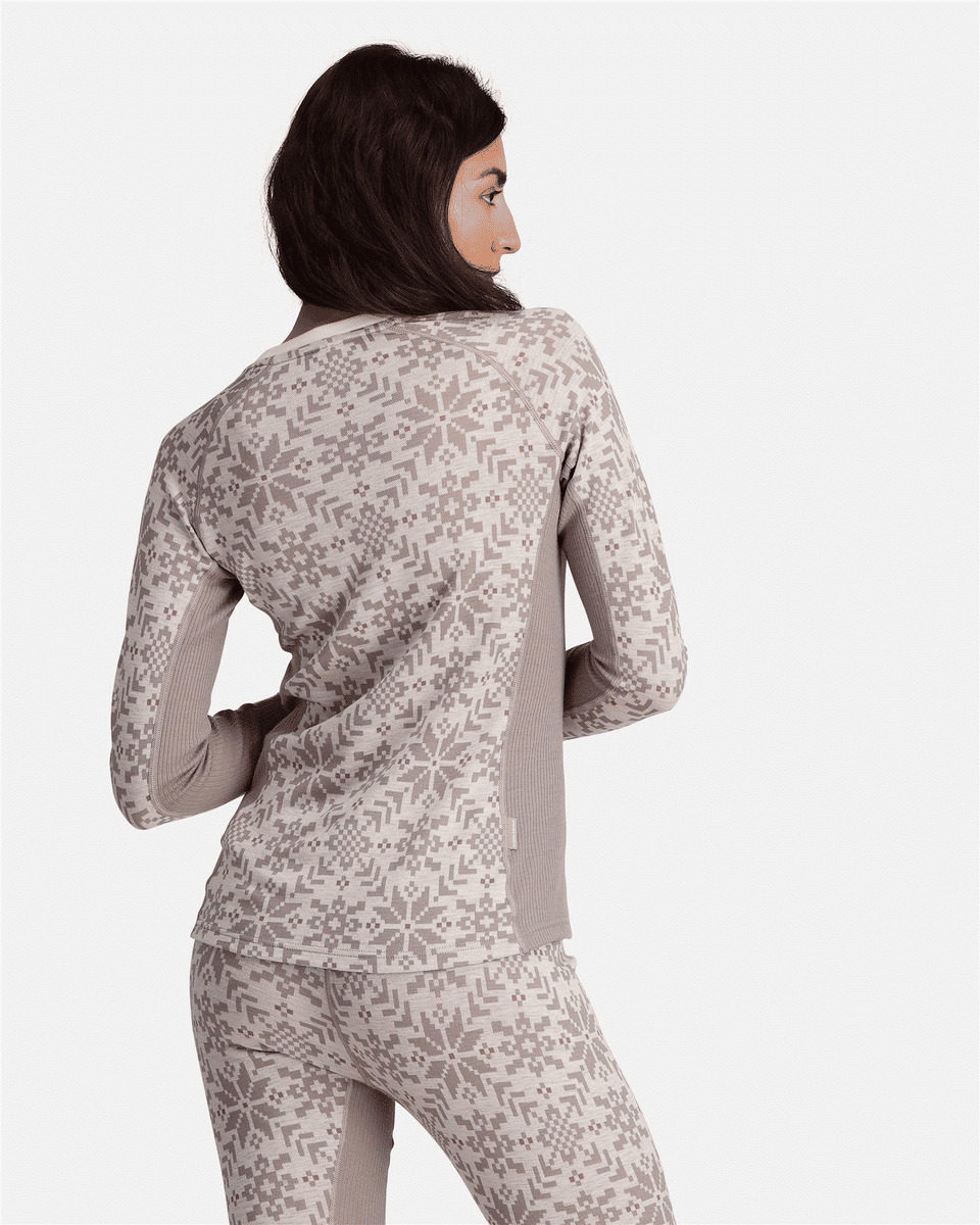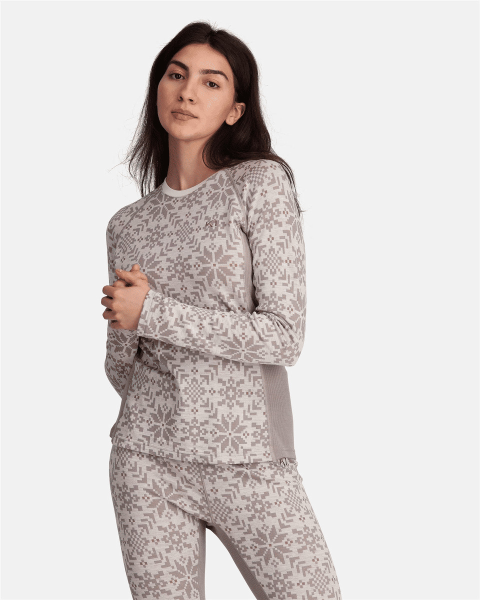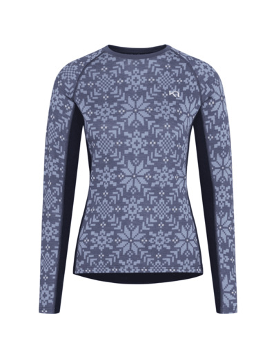 The Kari Traa Edith long sleeve is a versatile 100% Merino wool women’s baselayer crew. Underarm panels and stretch body mapping deliver superior fit and movement, while the soft wool promises next-to-skin comfort. With a stunning Nordic design, the Edith’s feminine features pair with the top’s innate durability to create an enduring, breathable layer for every cool weather activity