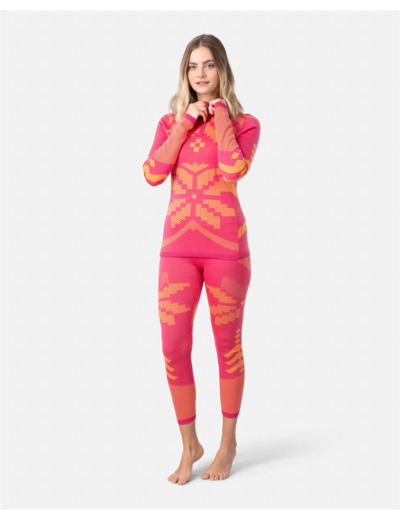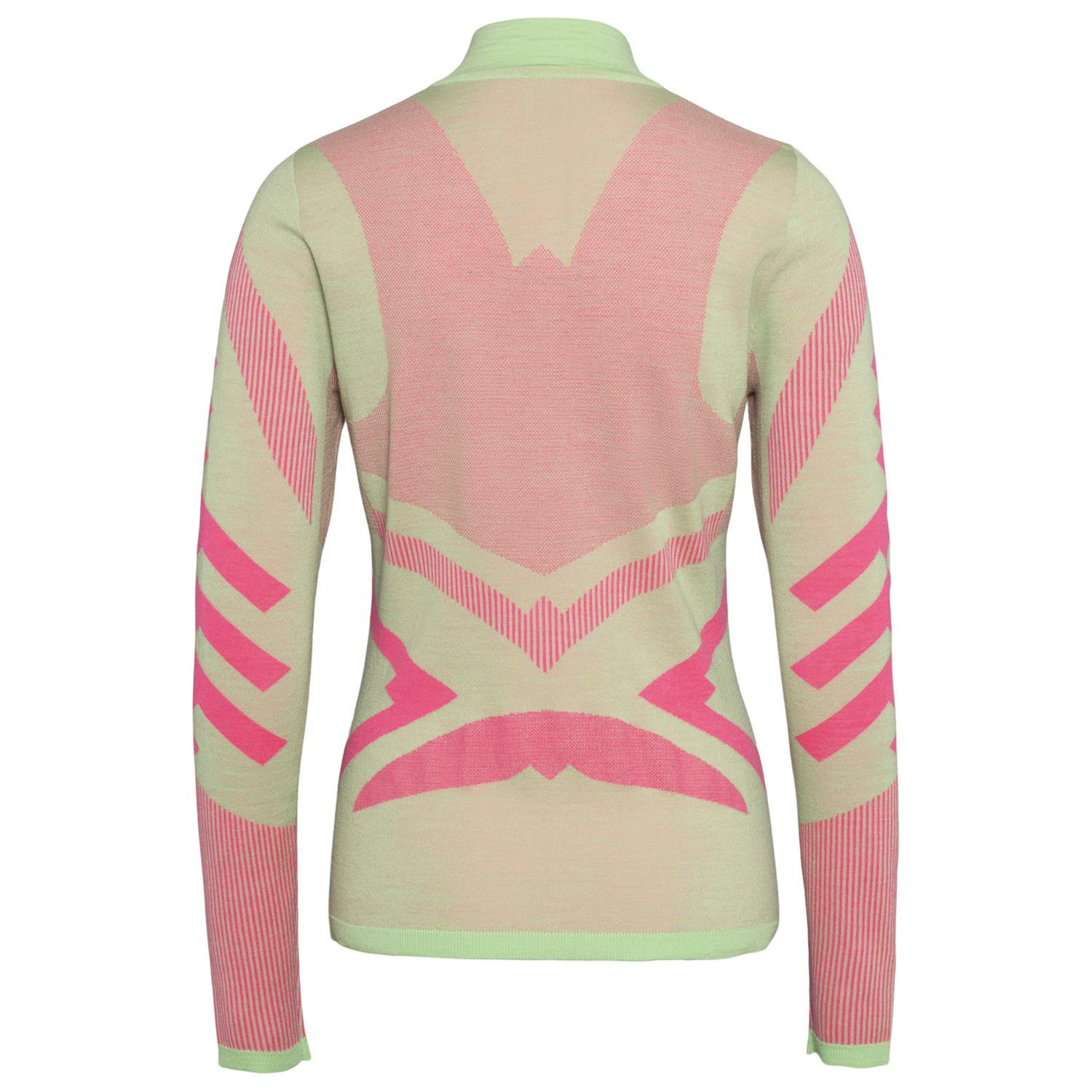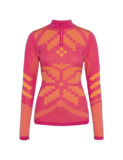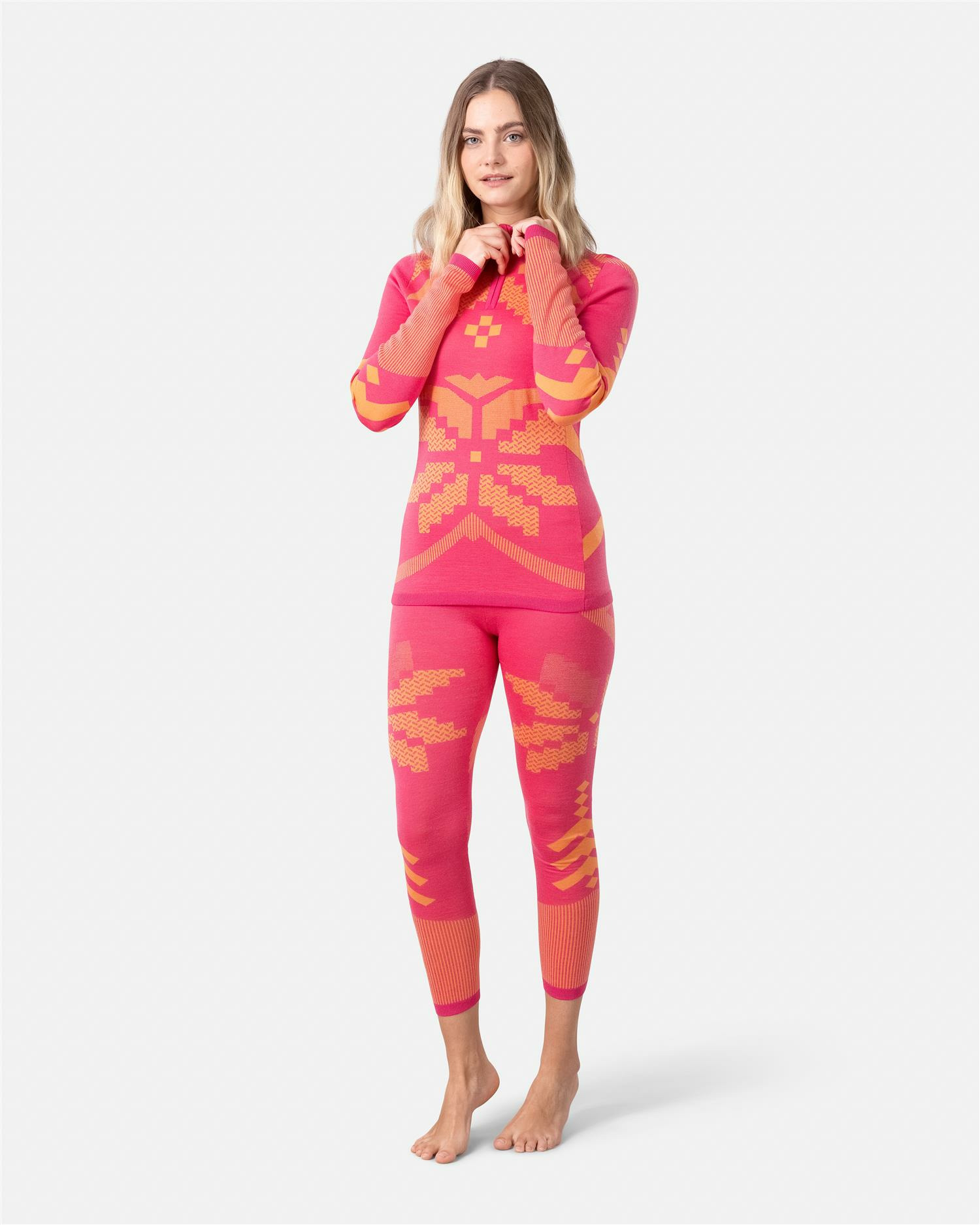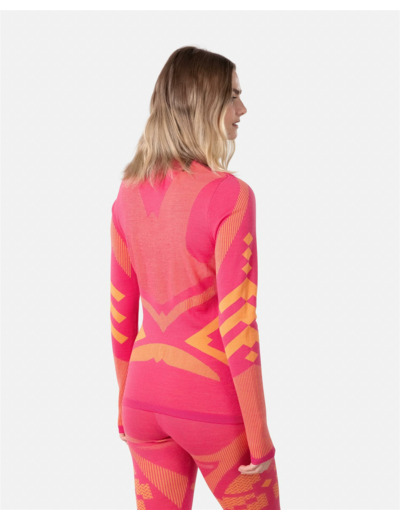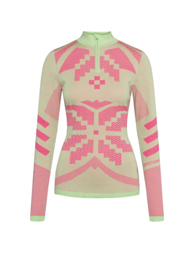 Meet the Kari Traa Faith Half Zip, a 100% Merino wool performance layer featuring our Female First body mapping technology. This semi-seamless top integrates supportive structure and ventilation where you need it: under arms, breast area, and back. With the eye-popping oversized Rose pattern, the Faith is for hard charging women who want to look as good as they perform