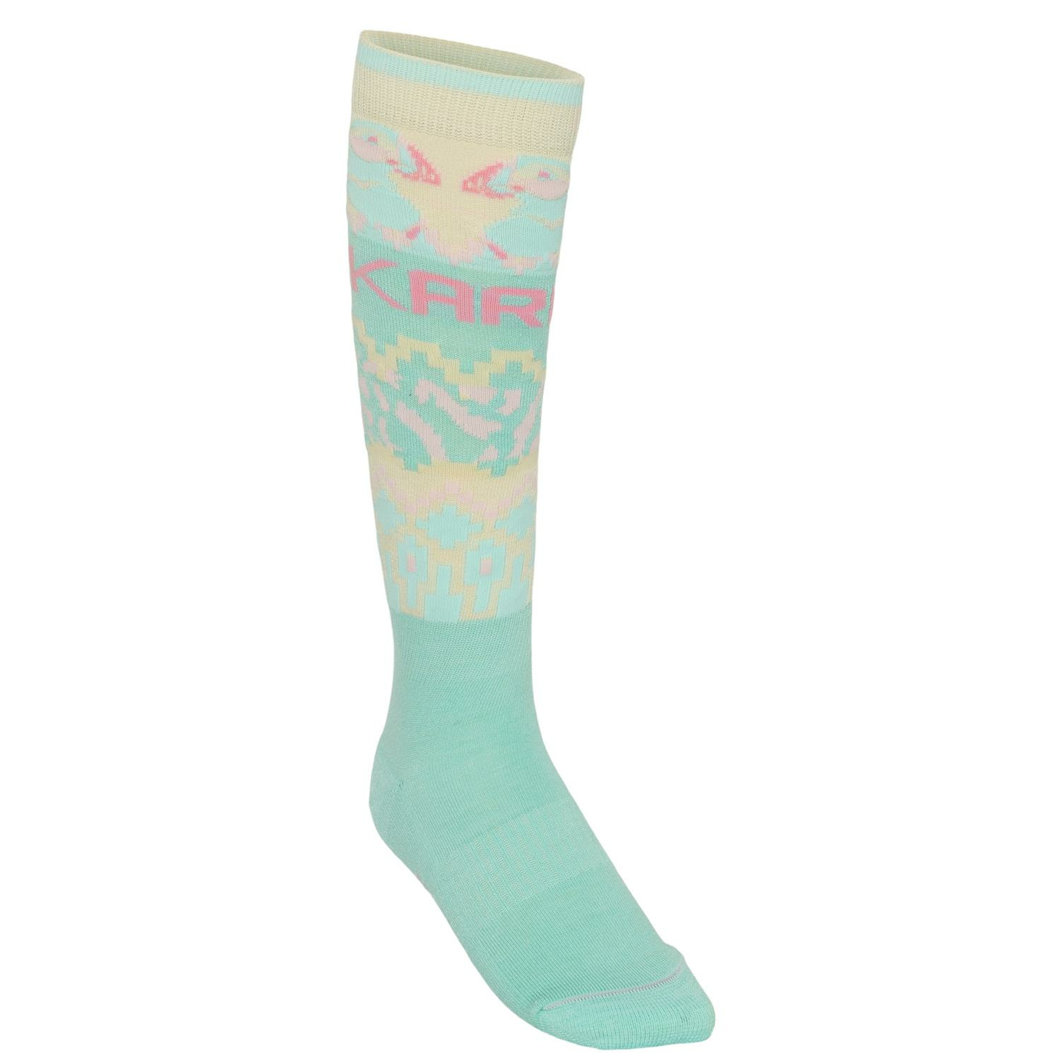 Brighten your on-snow days with the Kari Traa Johanne Sock, a thin Merino wool/synthetic blend with arch and ankle support and reinforced heel and toe. This knee-high sock will keep your feet warm, dry, and looking great, thanks to their classic Scandinavian-inspired design