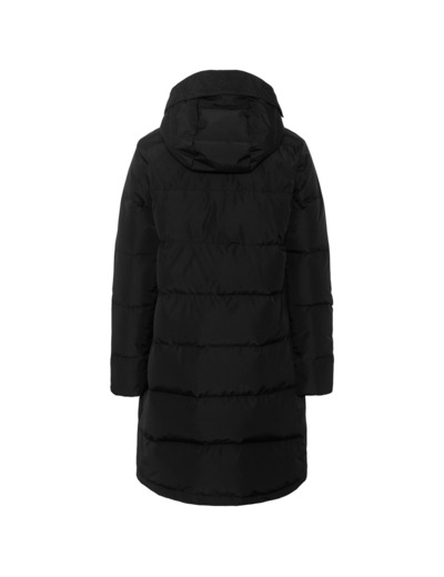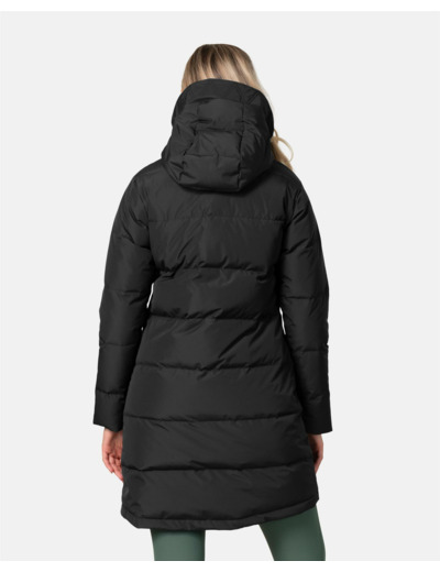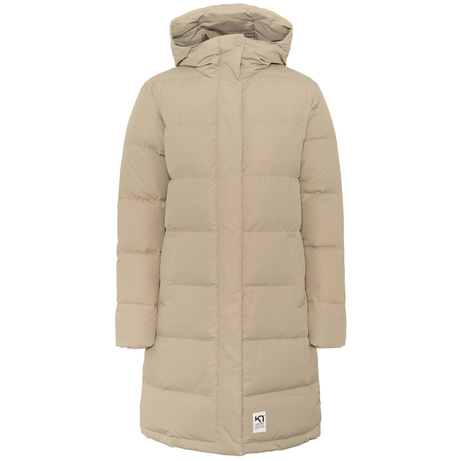 The Kari Traa Kyte Parka is a down jacket with a long cut and relaxed fit for a practical, urban look. Quilted panels hold the down fill in place, the fixed hood has a weather brim and velvety soft lining, and deep side pockets double as hand warmers