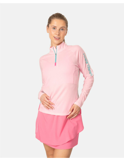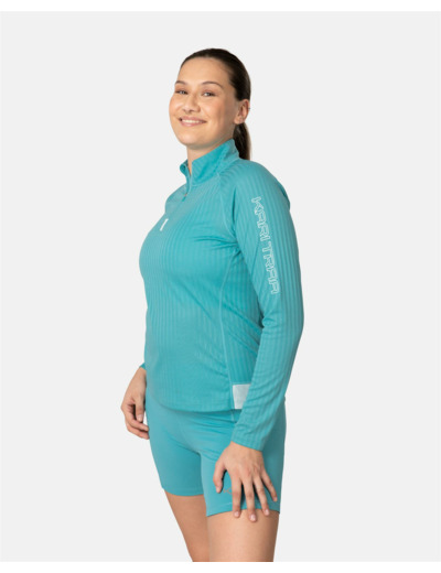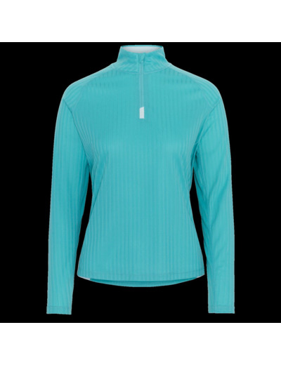 Take on the day with the Leah Half Zip. Quick-drying ribbed fabric and a high, zippered collar make this the ideal layer for hitting the trails or running around town. Contrasting details add a fun, feminine flair