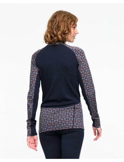 The Kari Traa Rose Light Half-Zip is a lighter weight, thin merino baselayer with a classy, feminine, Nordic-inspired floral design and a slim, sporty silhouette. Combining ethically sourced wool and 4-way stretch, this top offers next-to-skin comfort, natural odor-resistance, and breathability. The zip collar allows increased ventilation for personalized temperature control