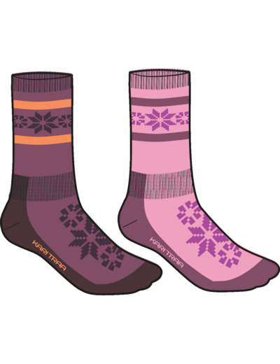 The Kari Traa Rusa Sock is a warm, wool-blend, Jacquard-knit, crew sport socks that comes in two contrast-color Nordic-inspired designs. Featuring arch support and a reinforced heel and toe for comfort and durability , the socks are terry-lined and have a flat toe seam to cut out chafing . Comes two pair per packet.