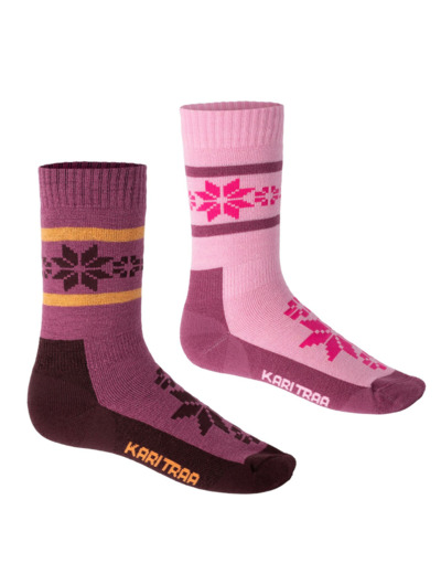 Kari Traa Rusa Sock 2-pack, on lämmin villasekoitteinen, jacquard-neulottu urheilusukka. Sukkaa on saatavana kahdessa kontrastivärisessä pohjoismaisesti inspiroituneessa mallissa. 41% villa 41% akryyli11 % polyesteri 4% polyamidi 3% elastaani.