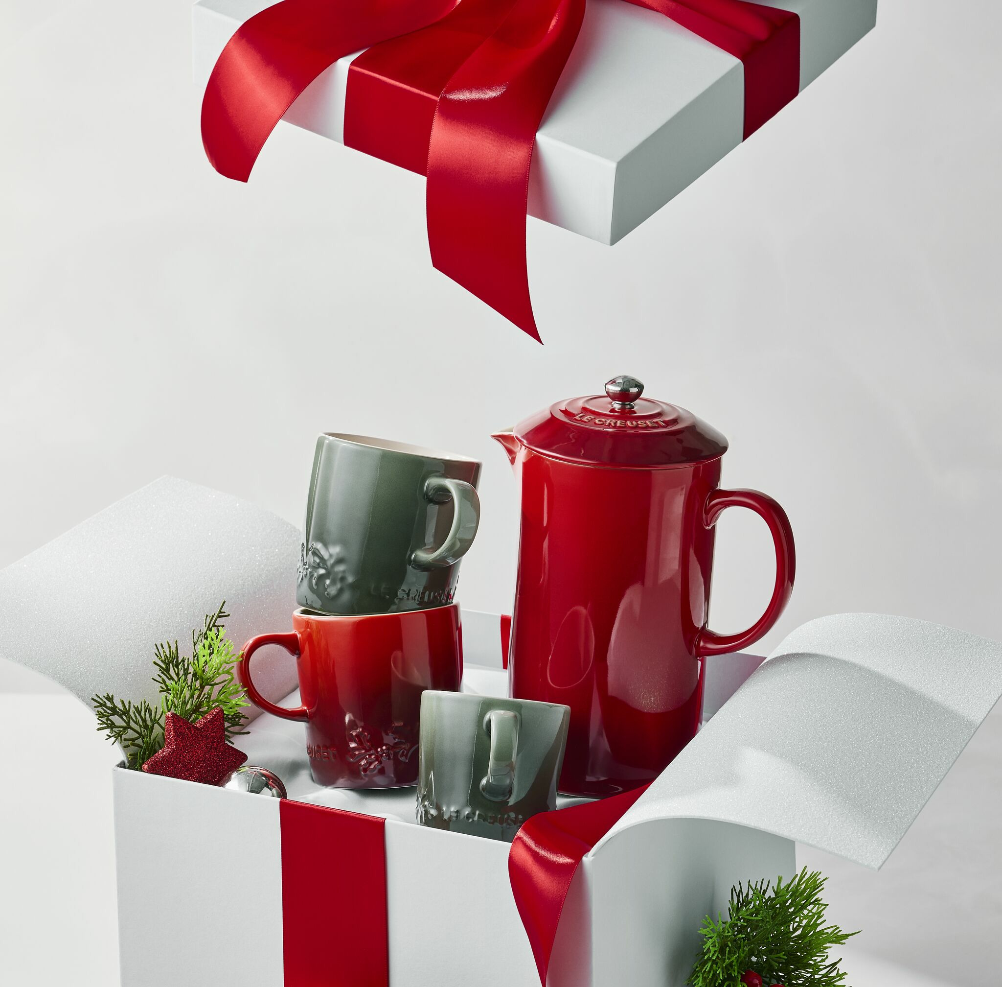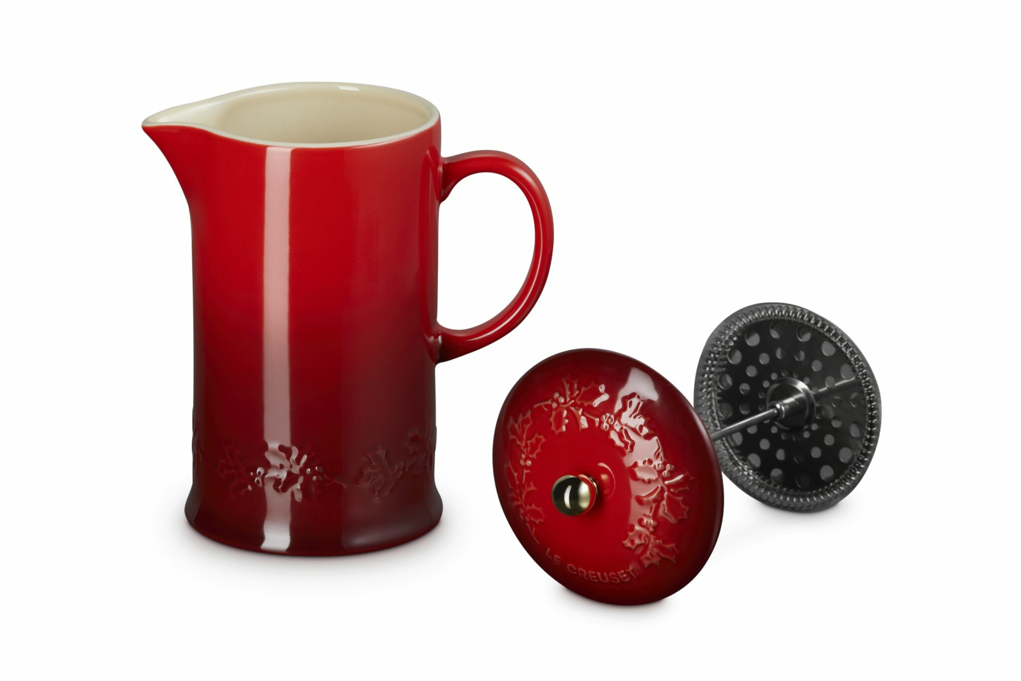 Infuse your festivities with freshly brewed coffee poured from our showstopping Cafetiere from the Limited Edition Holly Collection. Crafted from heat-retaining Stoneware, embossed with Christmas foliage and topped with a gold knob, you can stylishly serve guests, announced or unannounced, all season.