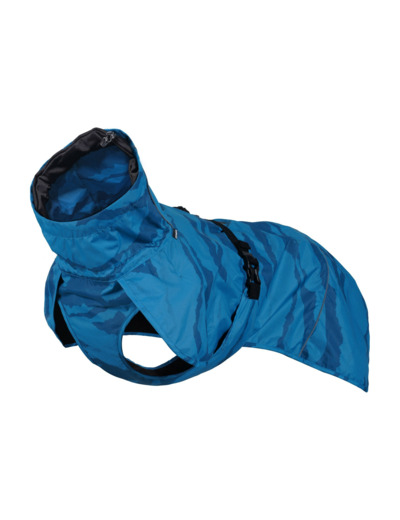 A lightweight raincoat protects your dog's coat from rain and dirt, especially in spring and autumn. The soft pritex lining feels comfortable and keeps your dog warm on cold days. The lightweight product is easy to keep clean and dries quickly in a ventilated space. The coat has an adjustable back length that allows you to customize the fit perfectly for your dog. The outer edge of the collar features a convenient stretchy rain collar that prevents water from dripping inside the coat. The high, protective collar and adjustable neckline and waist make it fit well. Thanks to the quick-release fastening on the back, the coat is easy to put on. There is a two-way zipper opening on the back for harness attachment. The rubber loops for the hind legs ensure that the coat stays securely on your dog even at high speeds. The coat has reflective piping.