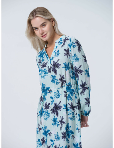 Luhta dress for women. Removable belt. Logo label. Printed pattern. The renewable raw material is sustainably sourced. Contains LENZING TM ECOVERO TM viscose fibers made from certified, sustainably produced wood using an environmentally friendly manufacturing process.