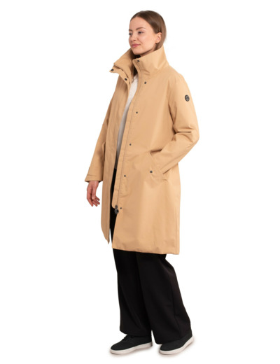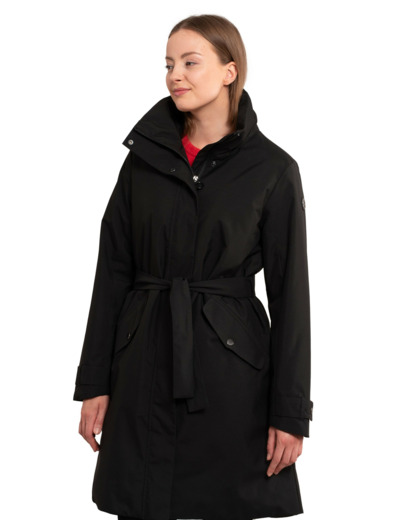 Luhta long padded jacket for women. Button adjustment at the cuffs. Two buttoned front pockets. Two-way zipper at the front. Double wind flap with snaps. Adjustable waist. Removable belt. Vent at the back hem. Logo label. Water column 10,000 mm. Breathability 10,000 g/m²/24h. Water-repellent treatment is done without PFC compounds. Thermore® Ecodown® is a 100% recycled fiber alternative to down. Ecodown® is very warm and airy, and it withstands repeated washing without clumping and leaving cold spots. The product uses recycled materials. Contains REPREVE® Our Ocean TM recycled polyester made from used plastic bottles collected from coastlines and near major waterways, where their risk of washing into the sea is high. A.W.S. ACTIVE product design pays special attention to functionality and comfort, making the product suitable for both active and relaxed movement. The fabric surface is treated to be water-repellent. Windproof material keeps you warm. Lightweight padding. Polyester lining.
