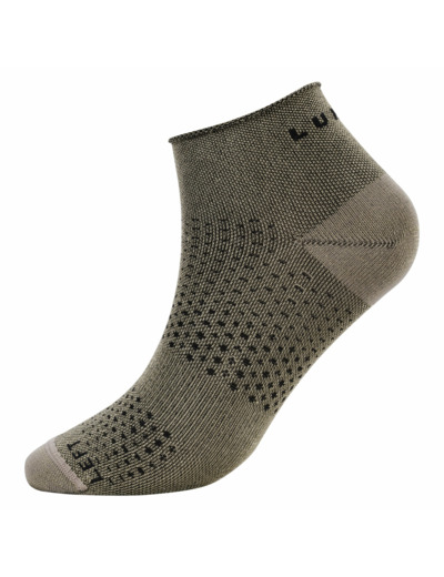 Luhta sukat naisille. Nilkkapituus. Kuvioneuloksinen logo. Kaksoiskoot 36-38, 39-42, 43-46. Jalkaholvin kaaren tuki. Pehmustettu varvas- ja kantaosa. Sileä varvassauma. Hengittävä verkkoneulos.