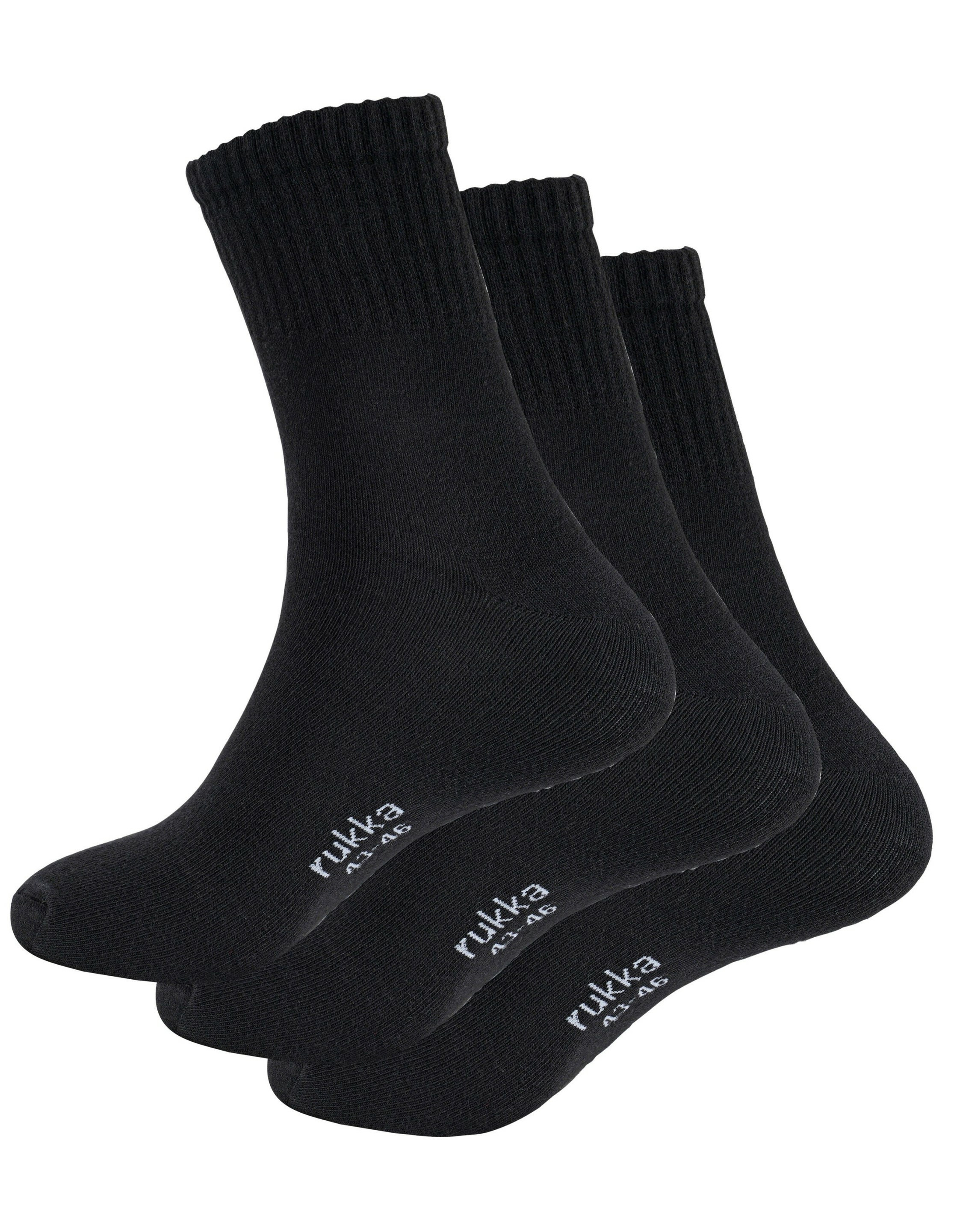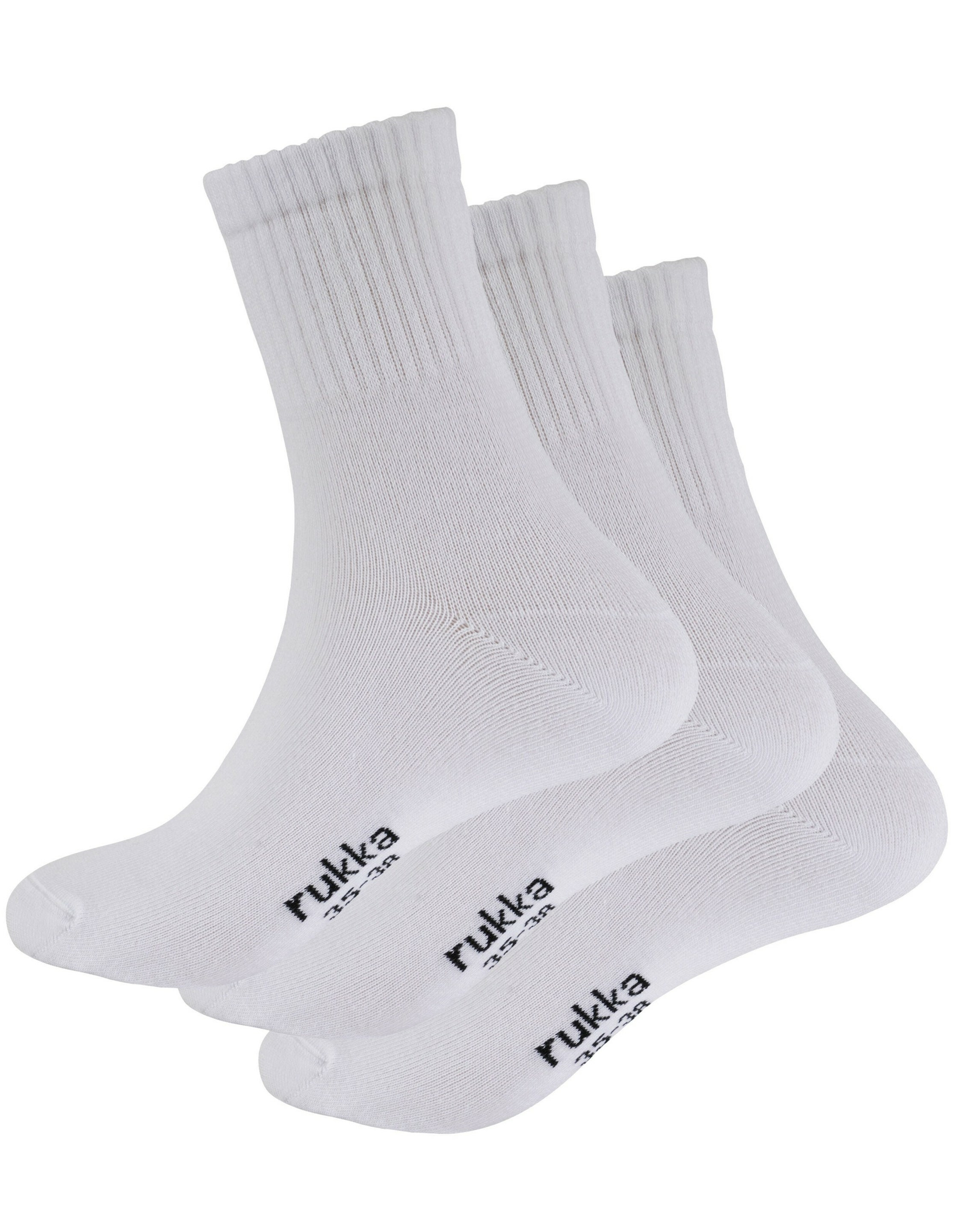 Rukka unisex socks. Ankle length. Patterned knit logo. Double sizes 35-38, 39-42, 43-46. Three-pack. The product's four-way stretchy material makes it easy to put on and comfortable to wear.