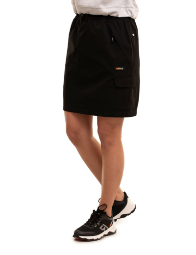 Skirt for women. Relaxed fit. Two zippered front pockets. Cargo pockets. Elastic waistband with drawstring. Logo label. The fabric surface has been treated to be water-repellent. The water-repellent treatment has been done without fluorocarbons. A.W.S. ACTIVE product design has paid special attention to functionality and comfort, making the product suitable for both active and relaxed movement. The product's stretch material stretches in four directions, providing complete freedom of movement.