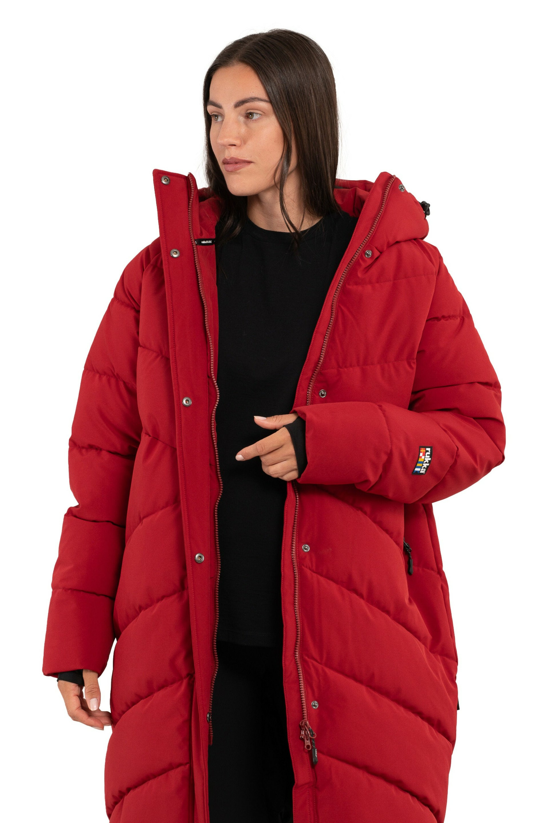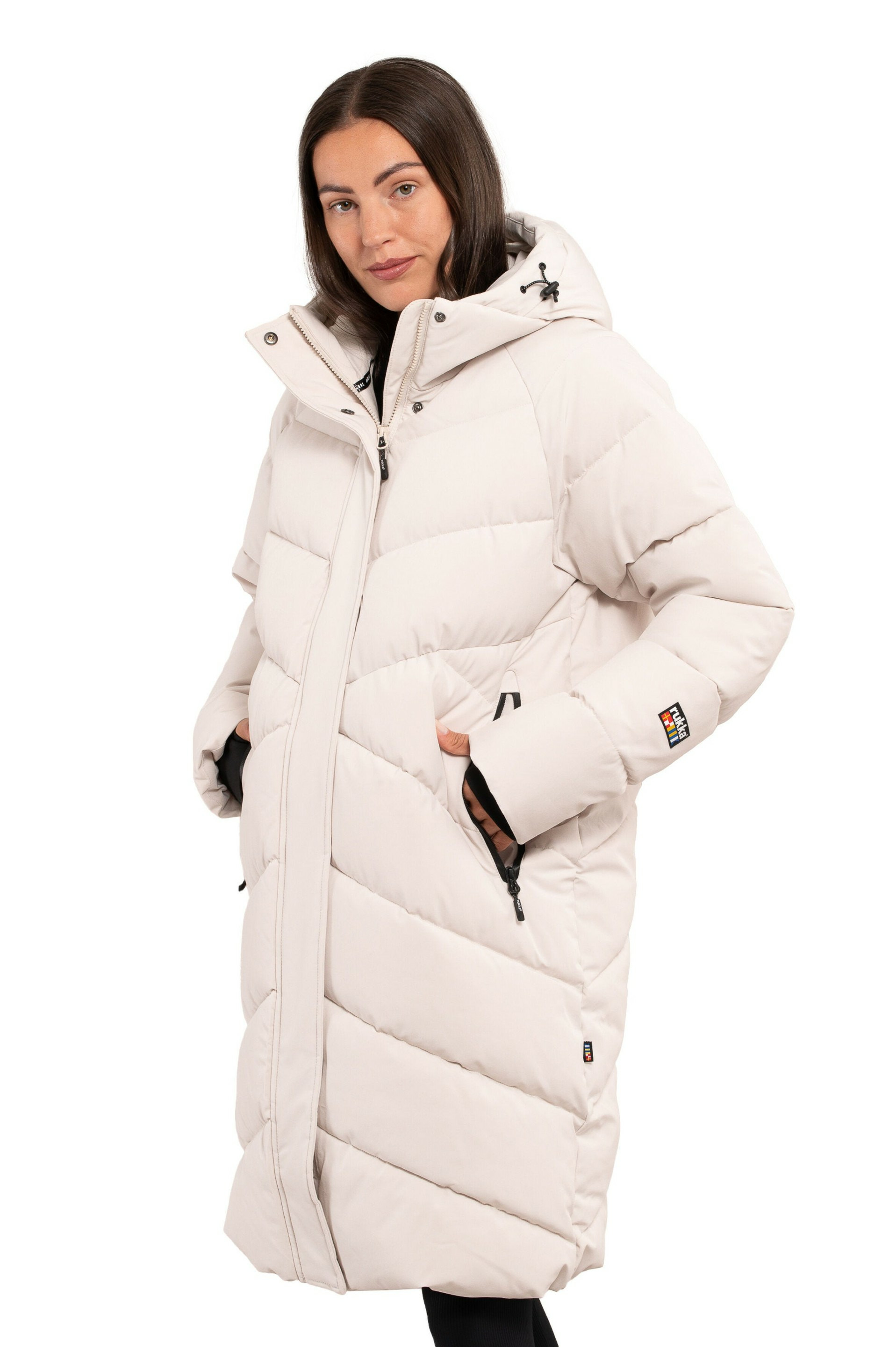 A long padded winter jacket keeps you warm and dry during cold days. The jacket has an adjustable, fixed hood and elastic inner cuffs that keep the cold at bay. Both front pockets have a water-repellent zipper. Inside, there is one zippered pocket, and the front zipper opens in two directions. The fabric is waterproof (water column value 10,000 mm): the jacket is made of two-layer fabric, where a waterproof membrane is combined with functional material. This breathable padded jacket is an A.W.S. ACTIVE product, suitable for both active and relaxed outdoor activities in demanding winter conditions.