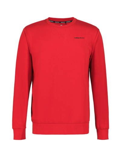 Rukka college sweatshirt for men. Regular fit. Round neckline. Logo label. Logo print. Contains recycled material. Contains organic material. Two-way stretch material increases freedom of movement.
