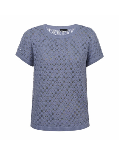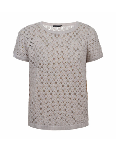 Relaxed fit lace knit sweater with a ribbed round neckline. The cuffs and hem also feature rib knitting. The back length of the sweater is 56 cm in size S.