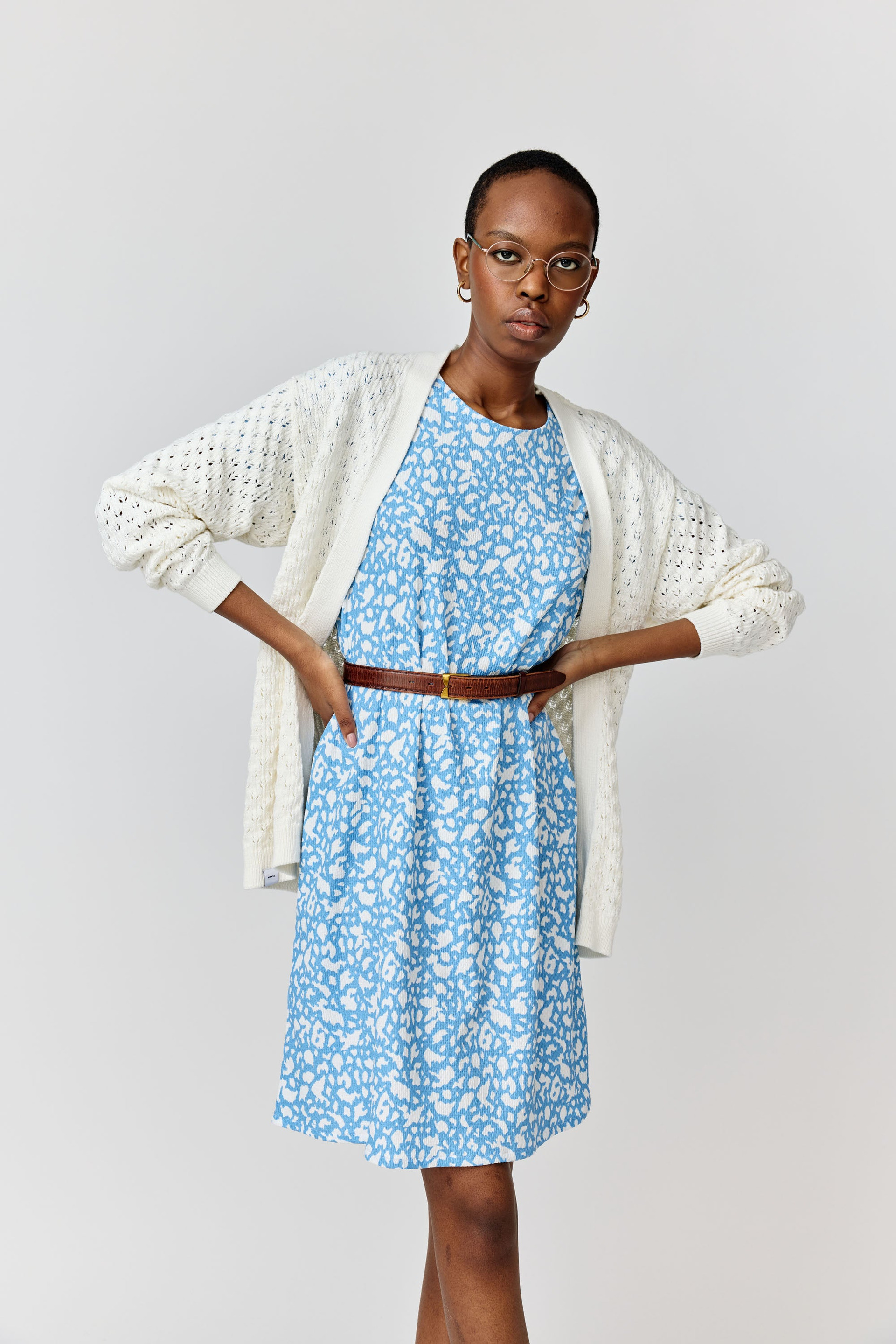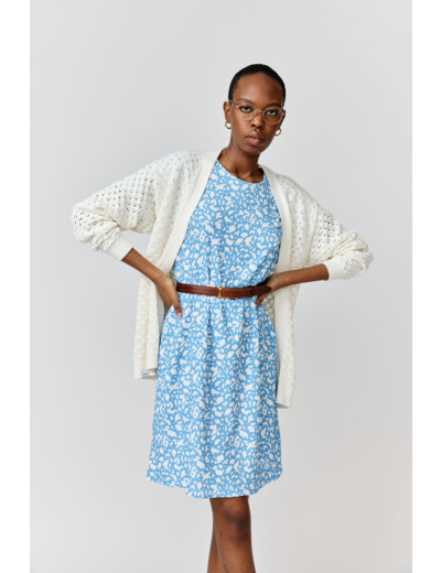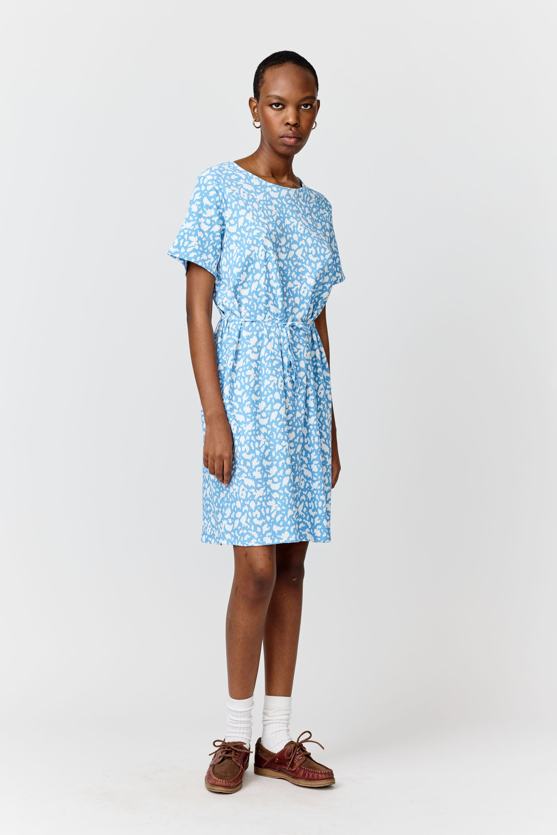 A knee-length dress with a regular fit. A narrow belt detail on the waist.